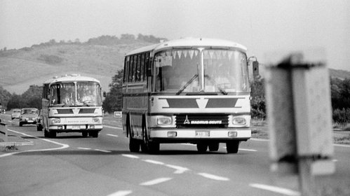 Wir fahren auf die westdeutschen Grenzer zu, da sehe ich, wie am Bus vor uns das ostdeutsche Nummernschild in ein Gießener Kennzeichen umklappt.